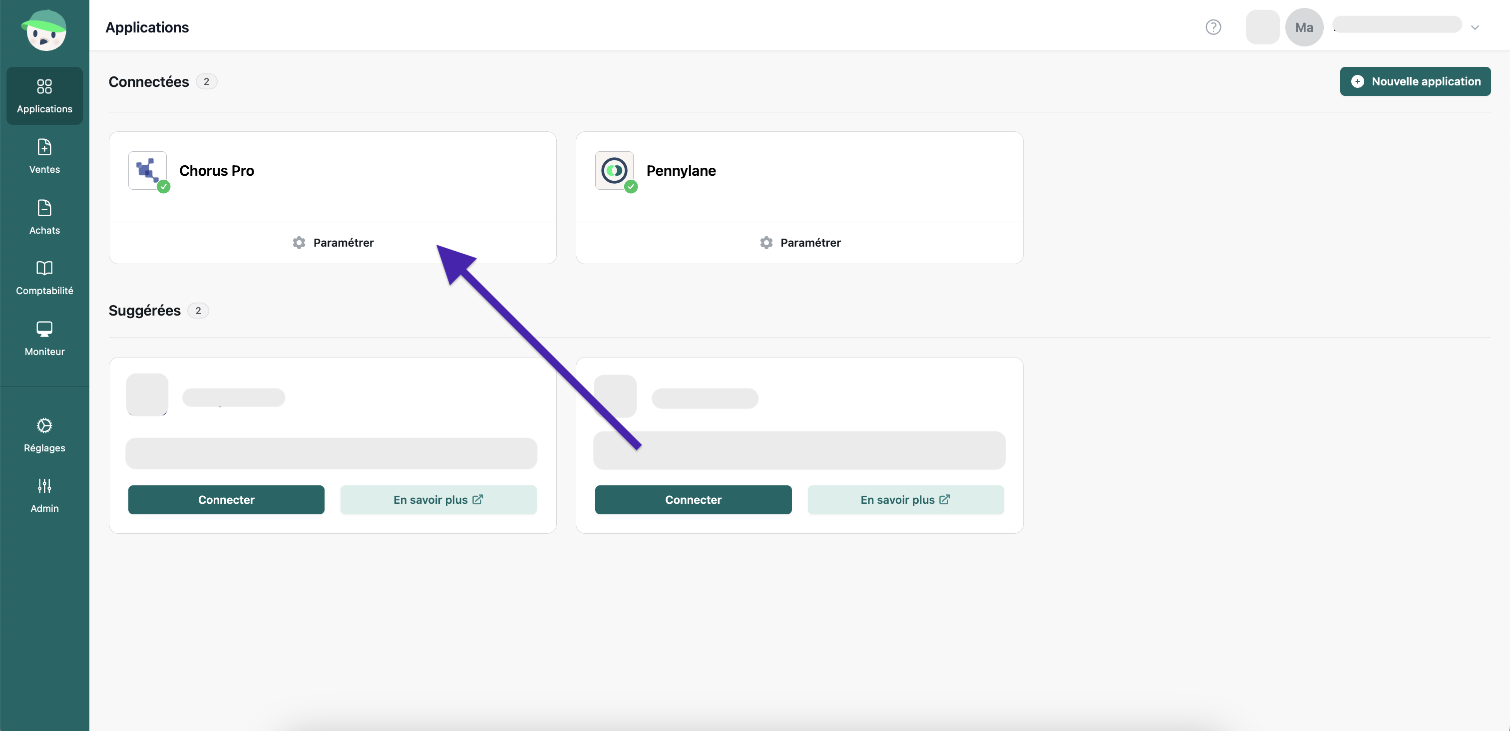 Sélectionner le bouton “Paramétrer“ de la carte Chorus Pro