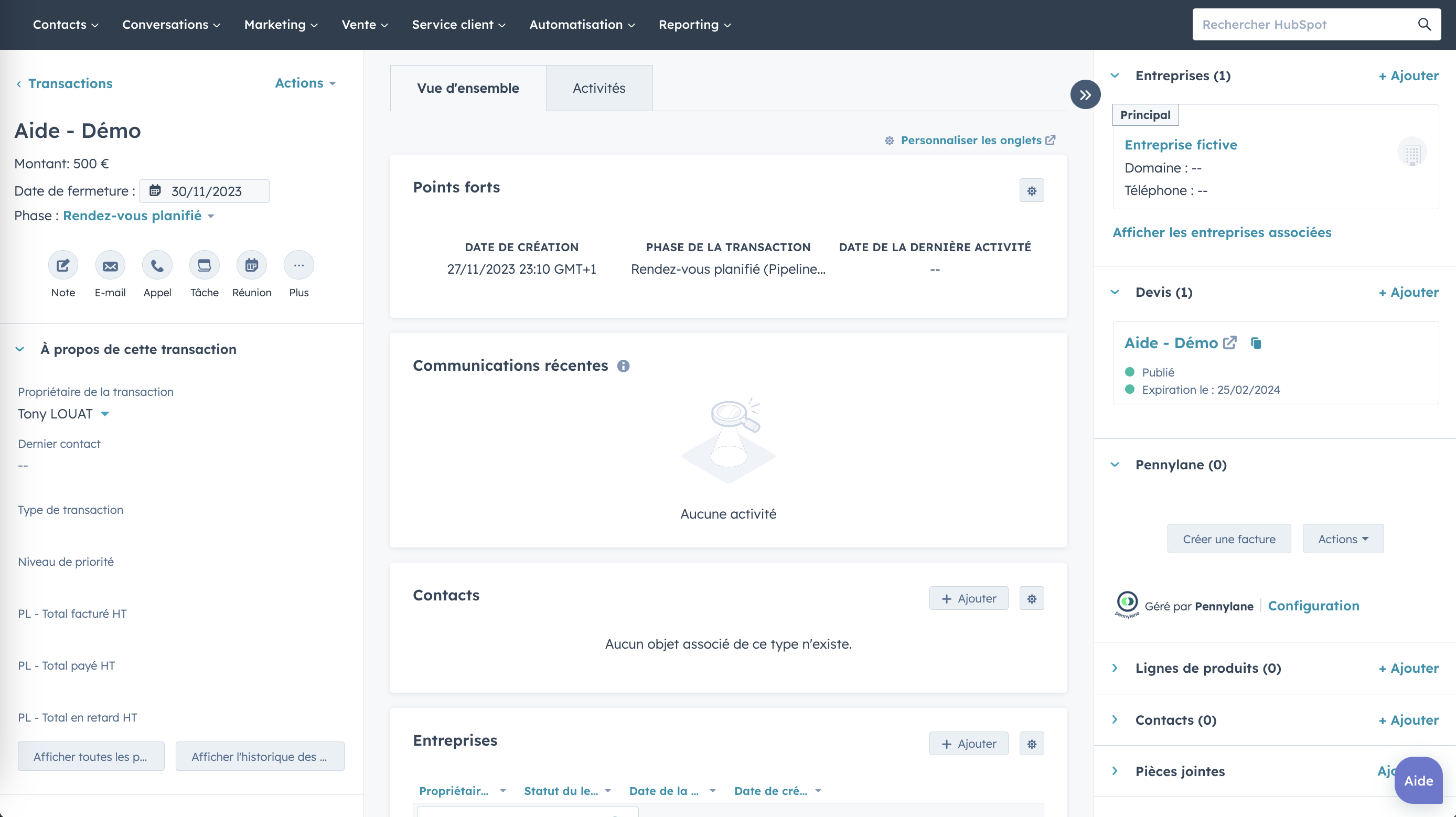 - Vous devez avoir configuré l’intégration entre HubSpot et Pennylane