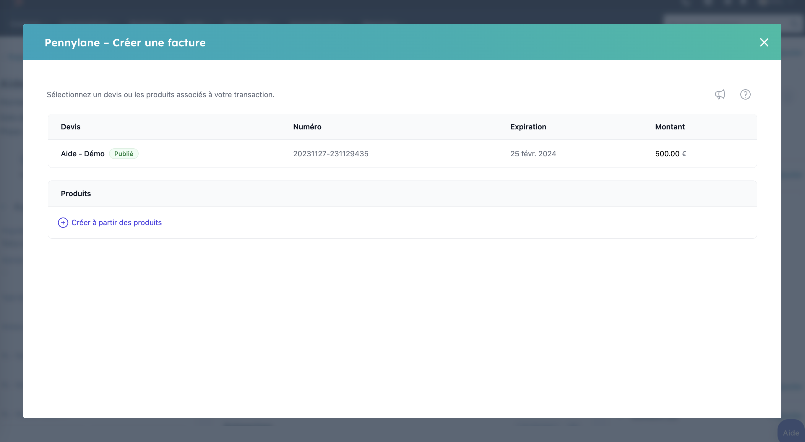 Facturer à partir d'un devis ou d'une liste de produits associé à votre Transaction