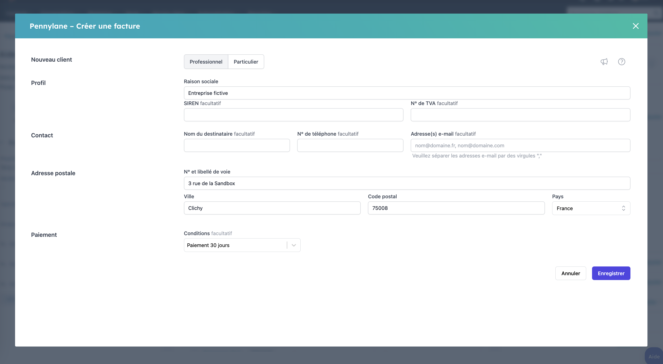 Sélectionner le client Pennylane qui s'affiche dans la liste