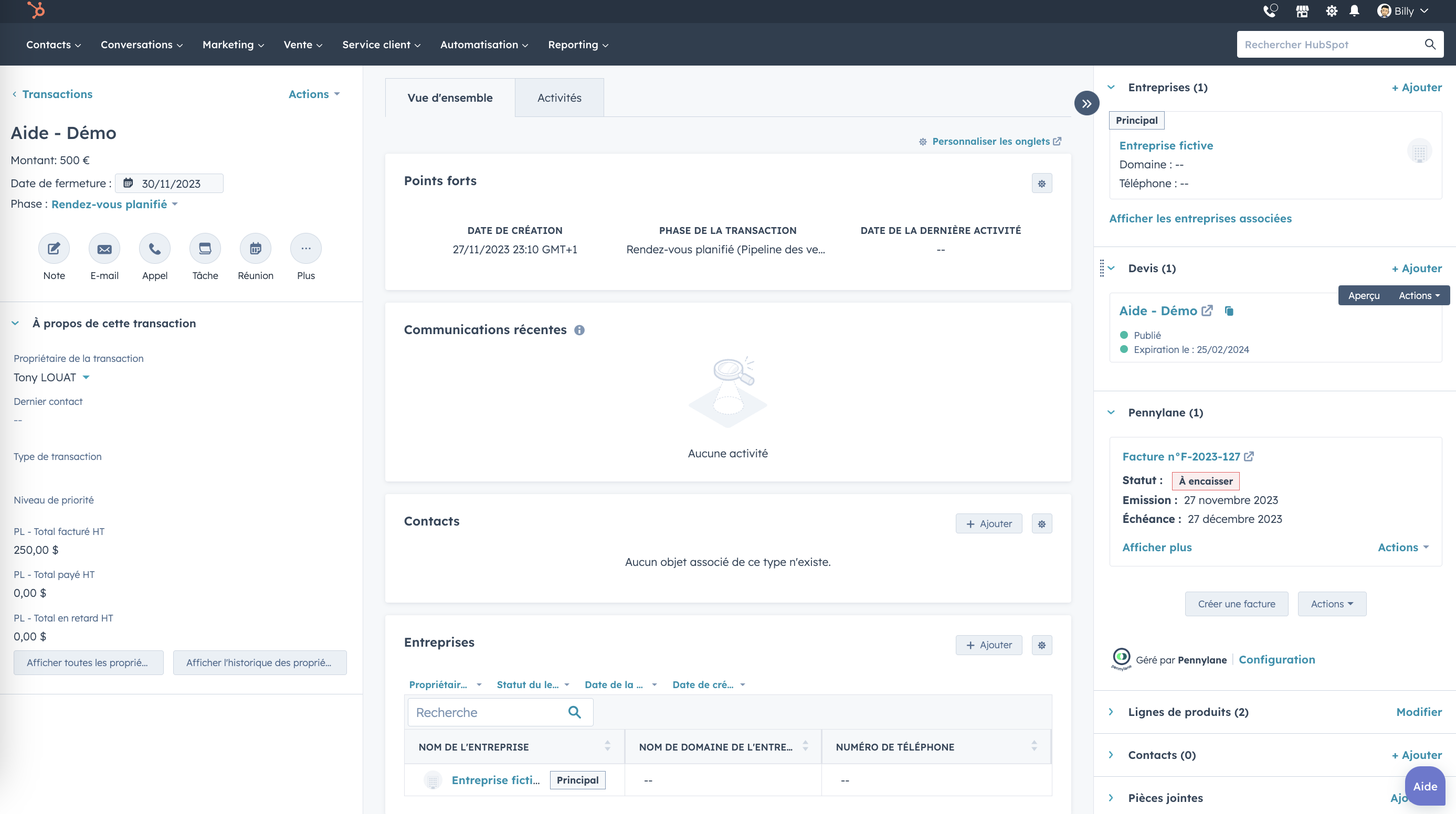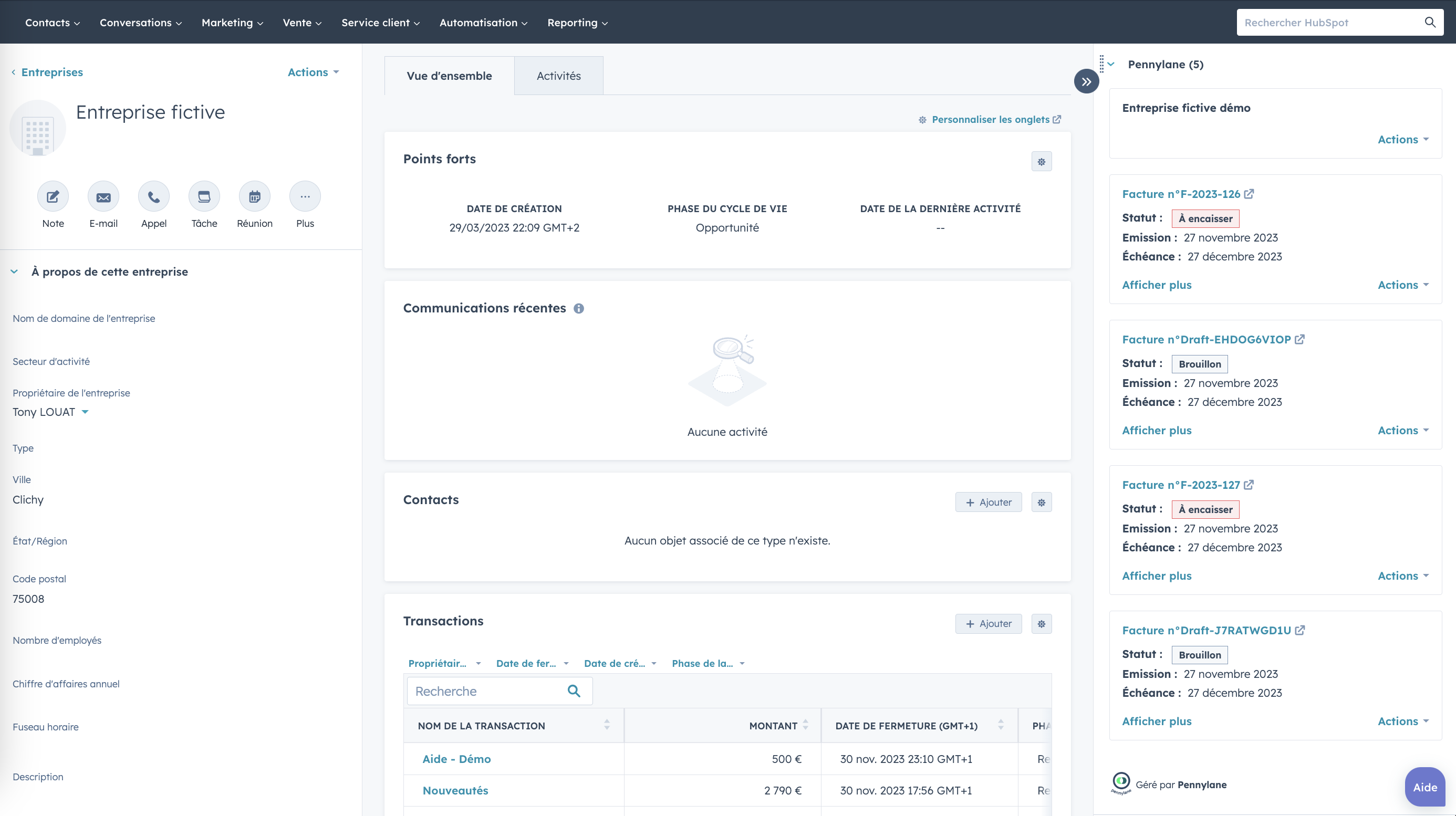 Vous pouvez maintenant suivre l’avancement de cette facture Pennylane depuis HubSpot. Son statut est actualisé tous les jours.