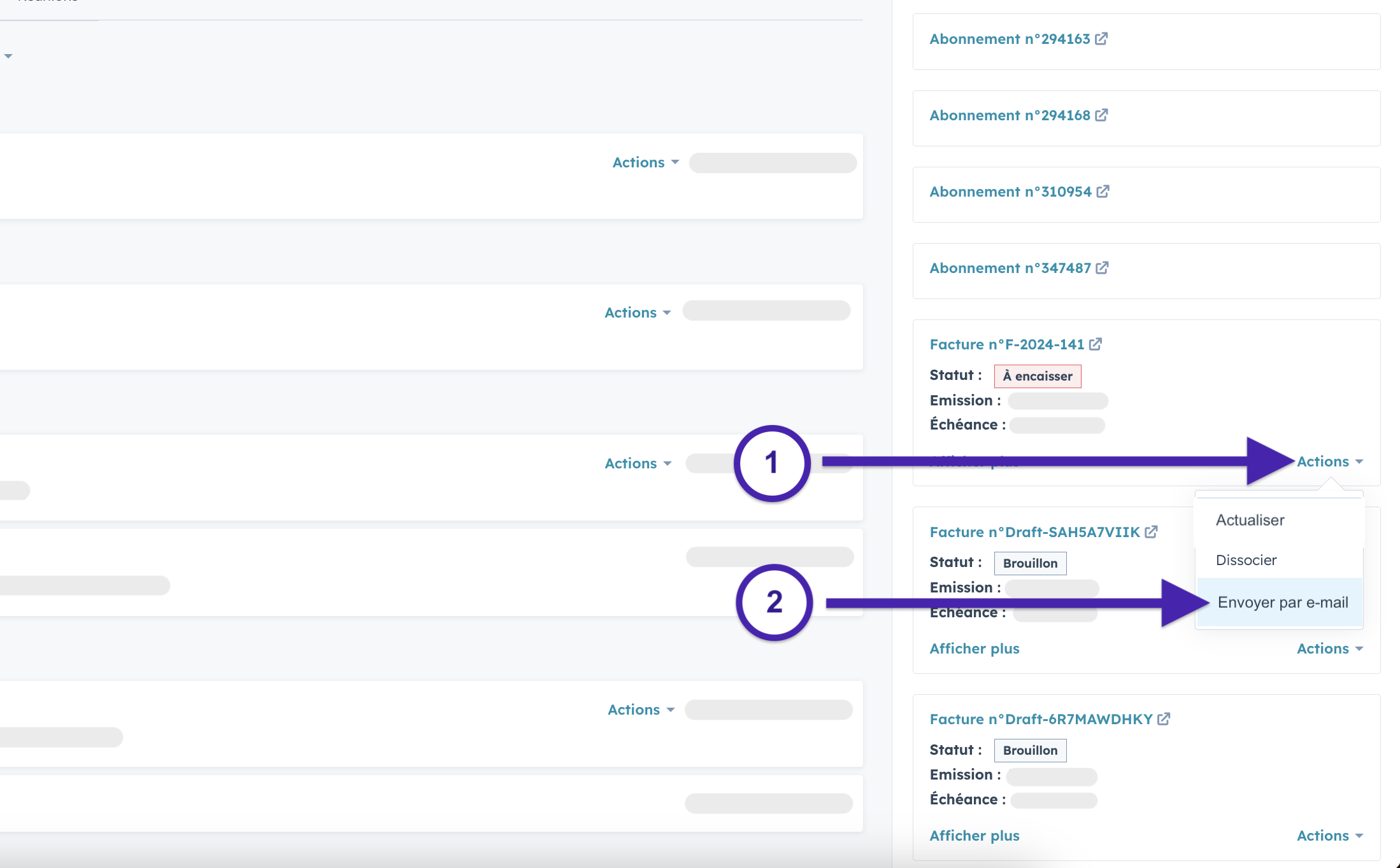 Sélectionner “Actions“ sur la facture de votre choix