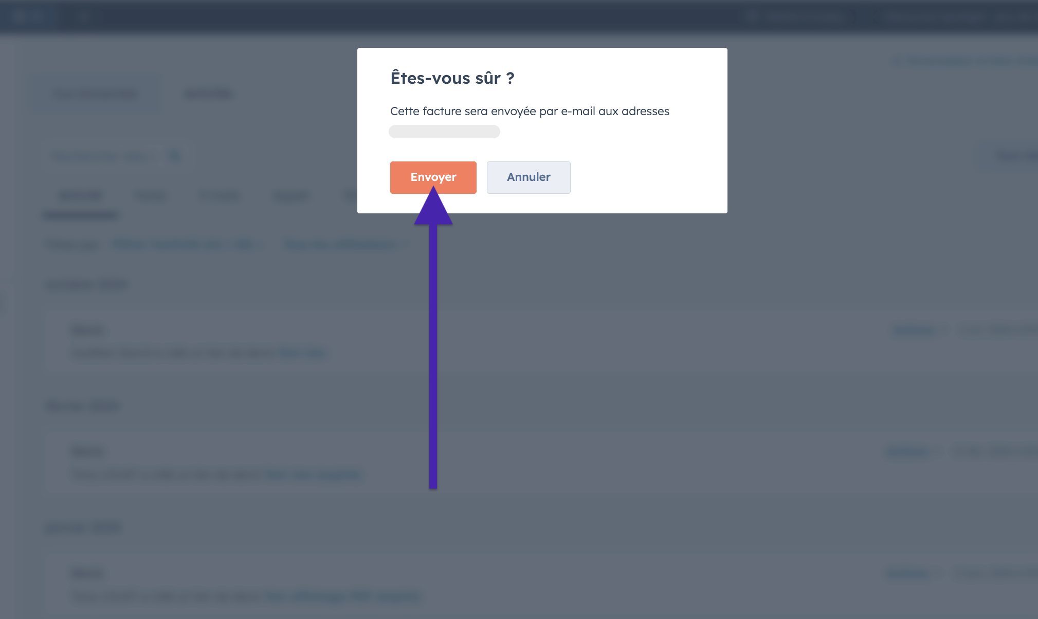 Vérifier l'adresse e-mail du destinataire puis sélectionner le bouton “Envoyer“