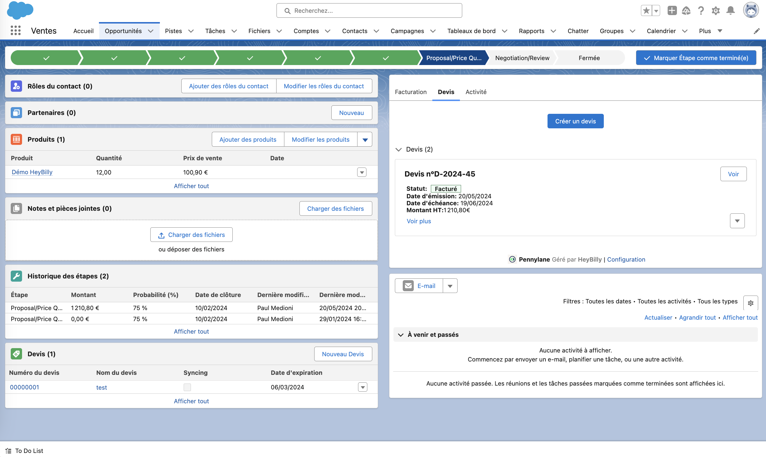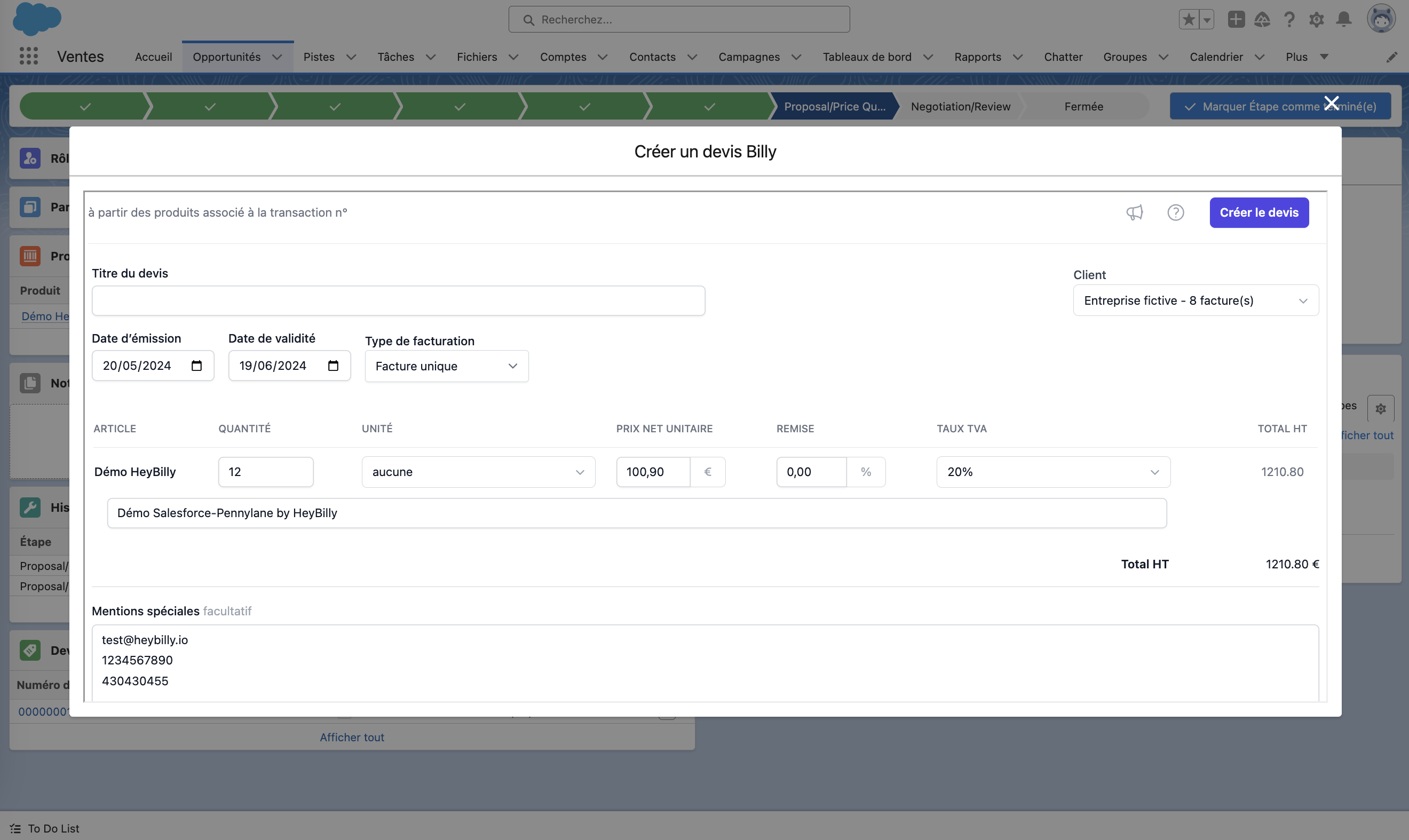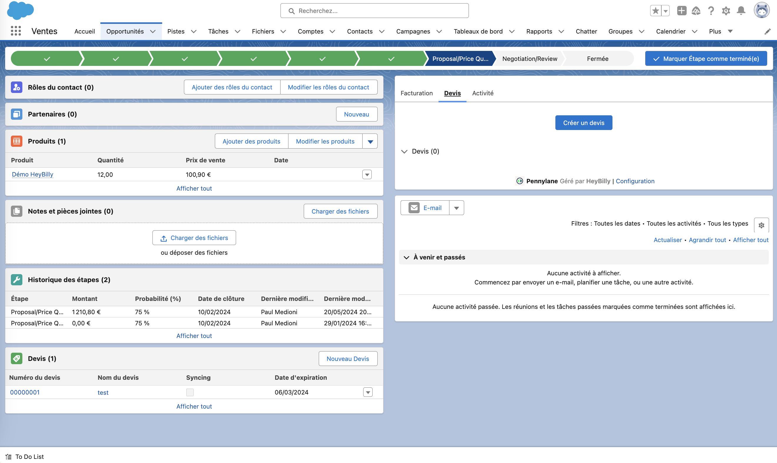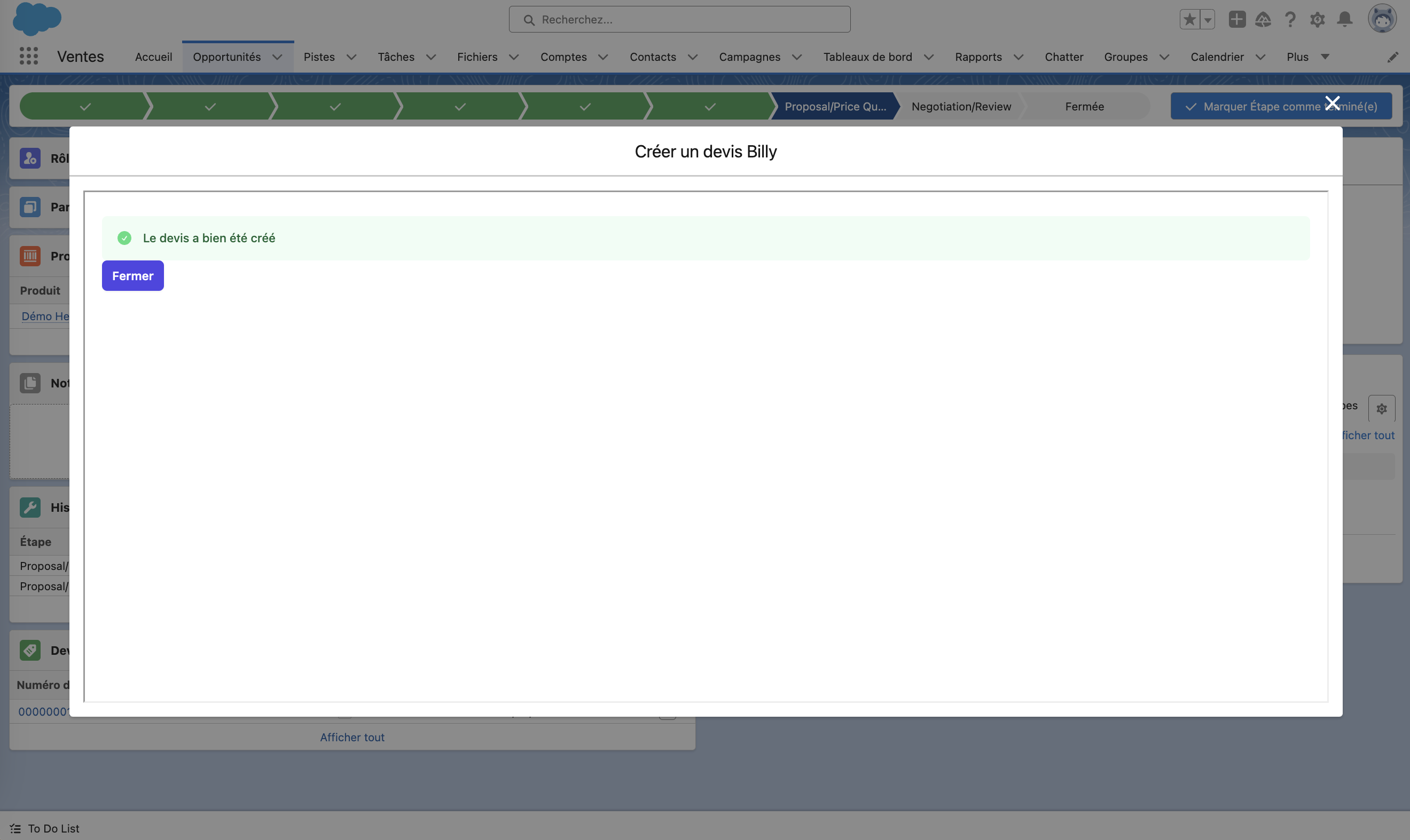 Une fenêtre s’ouvre. Vous retrouverez l’ensemble des produits associés à votre opportunité.