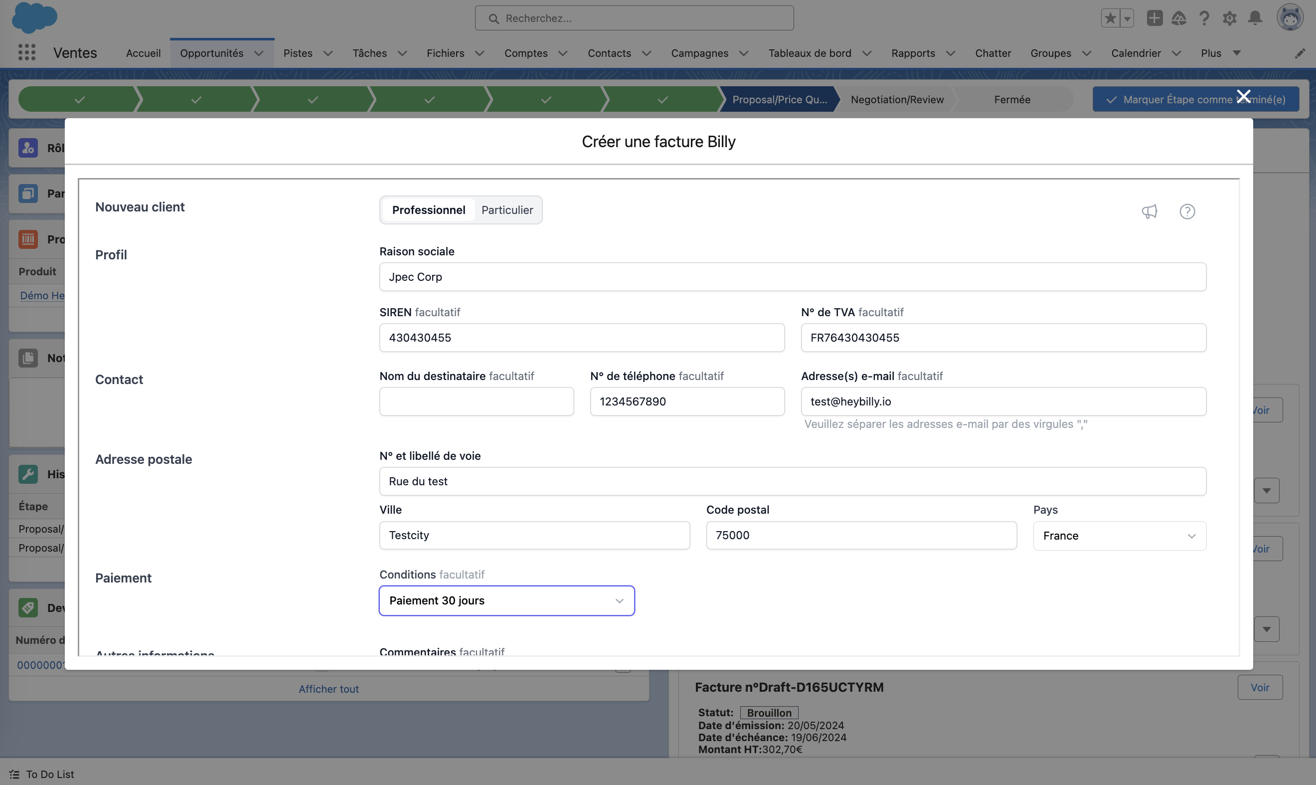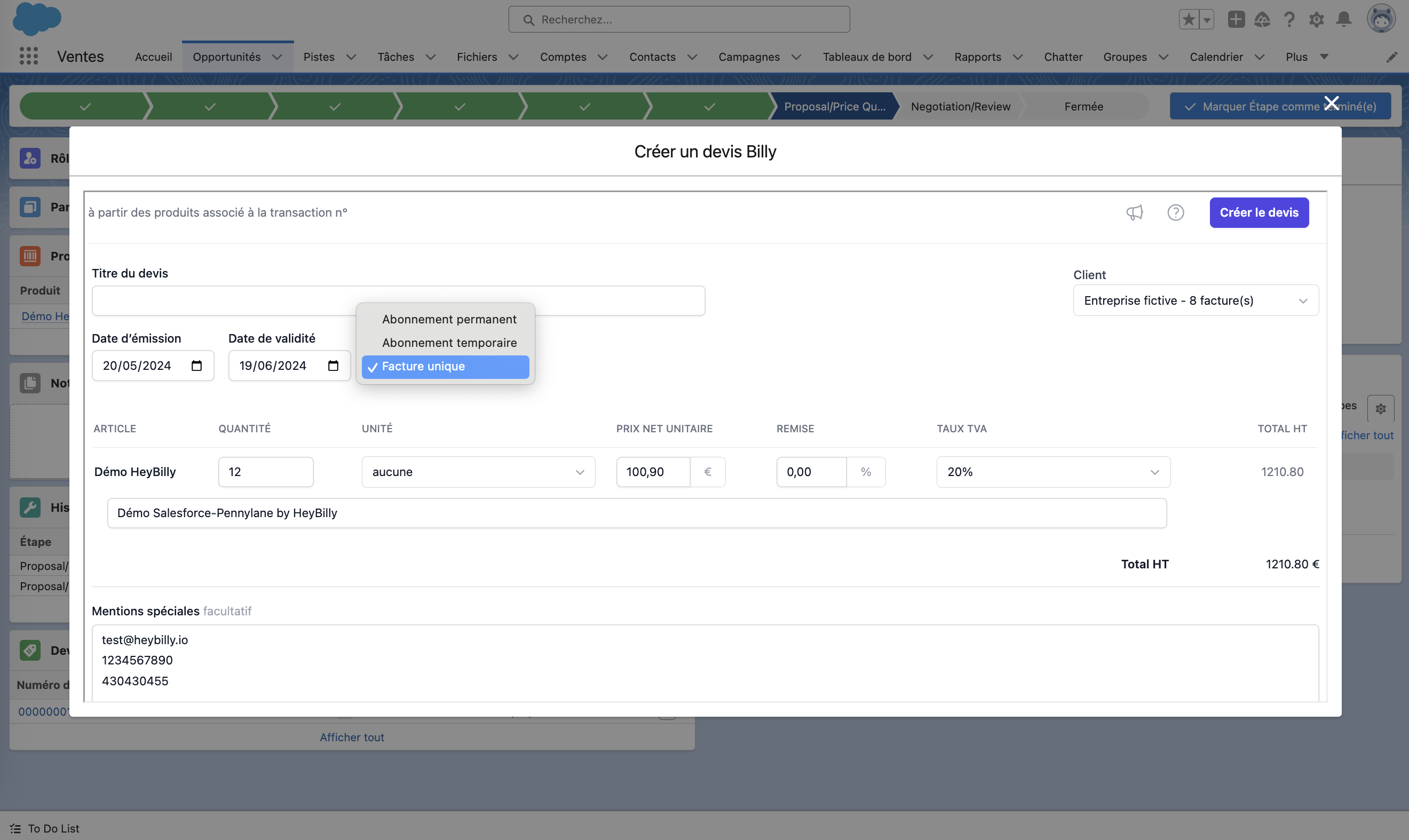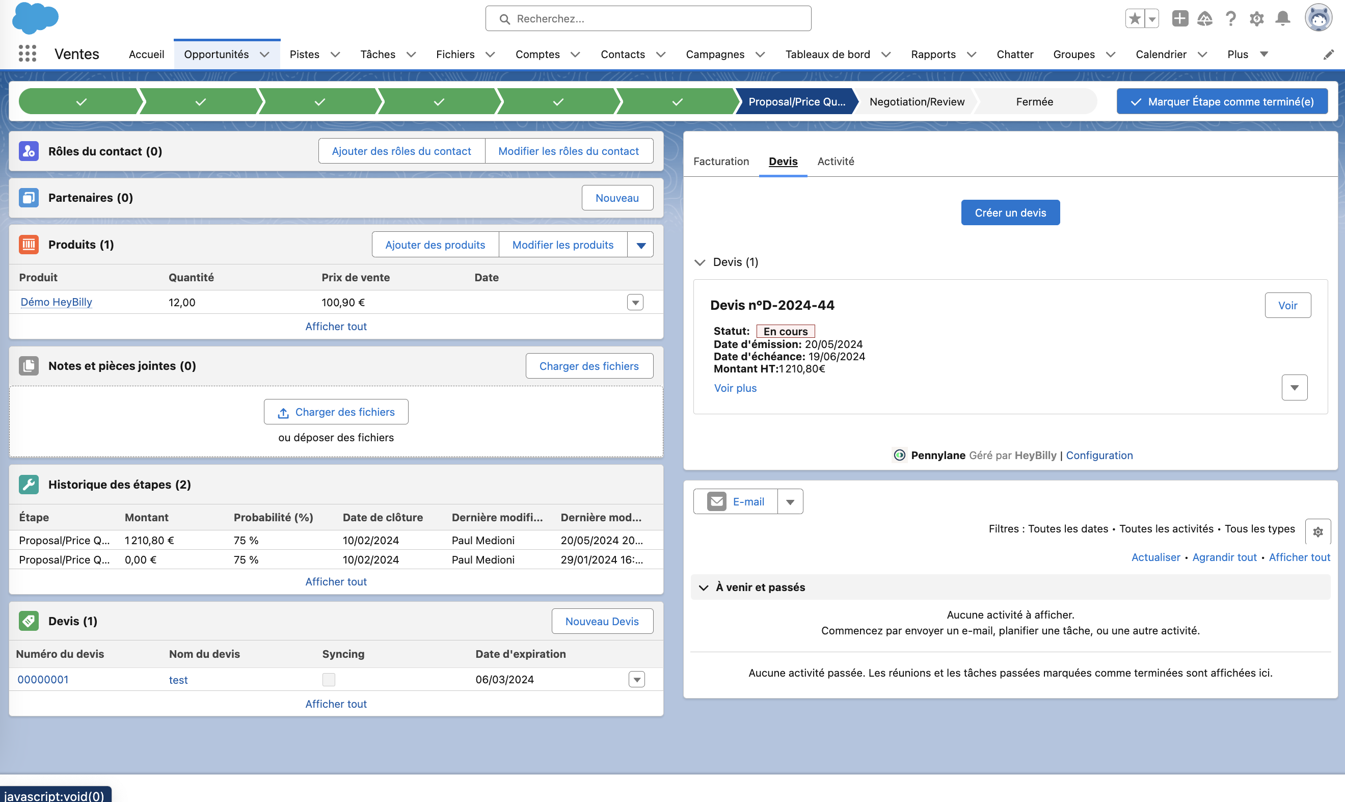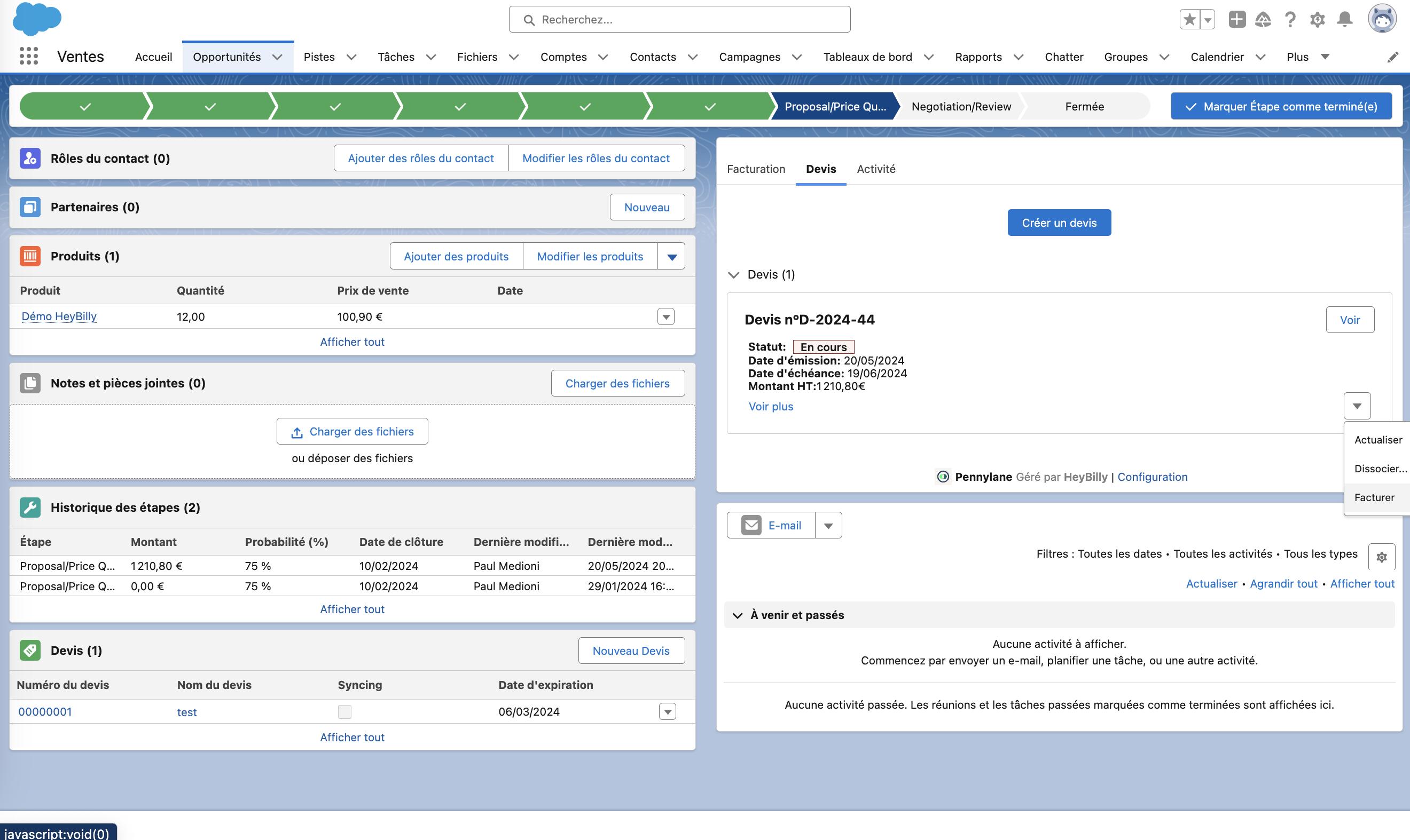 Une fenêtre s’ouvre. Vous retrouverez l’ensemble des produits associés à votre opportunité.