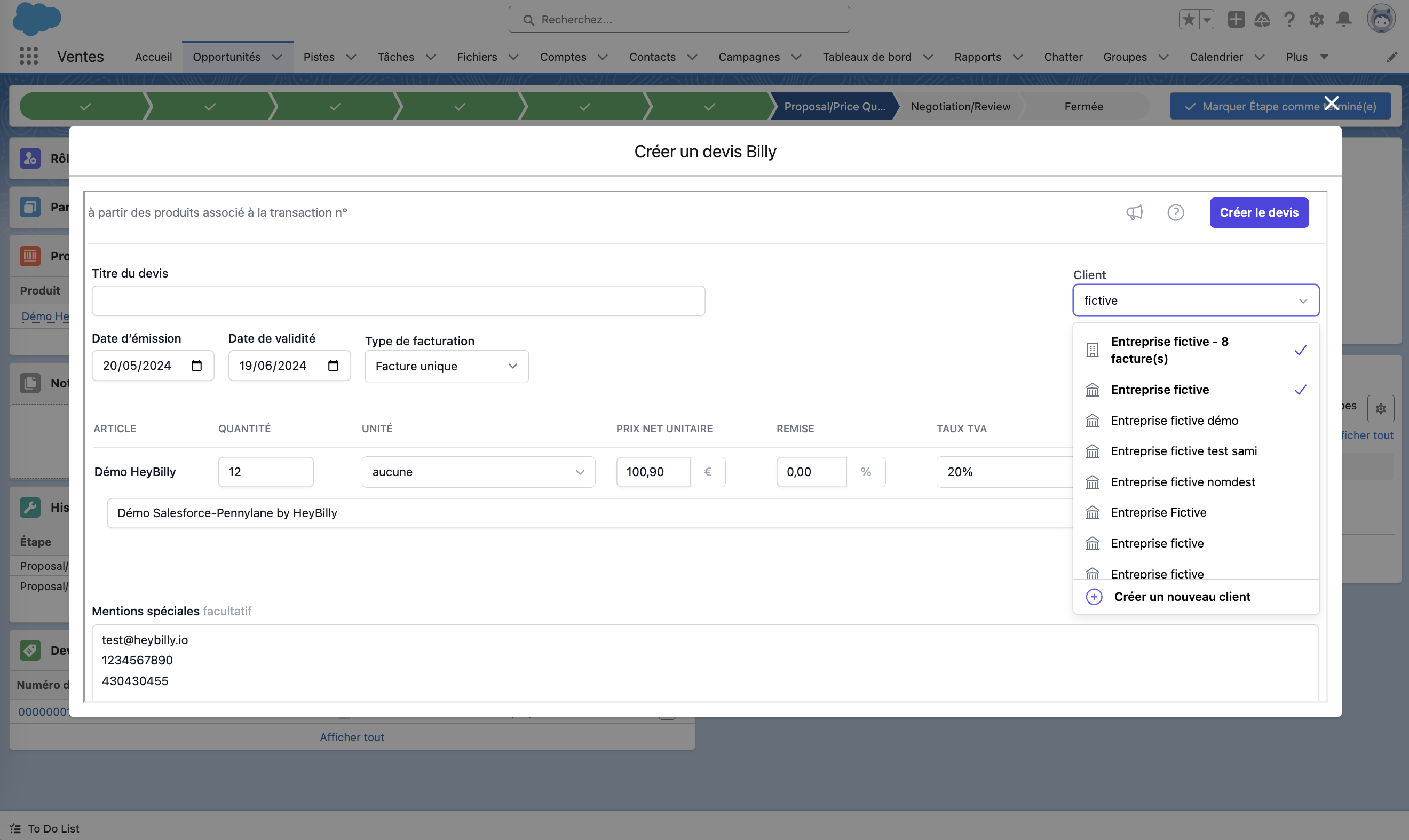 Sélectionner le client Pennylane qui s'affiche dans la liste