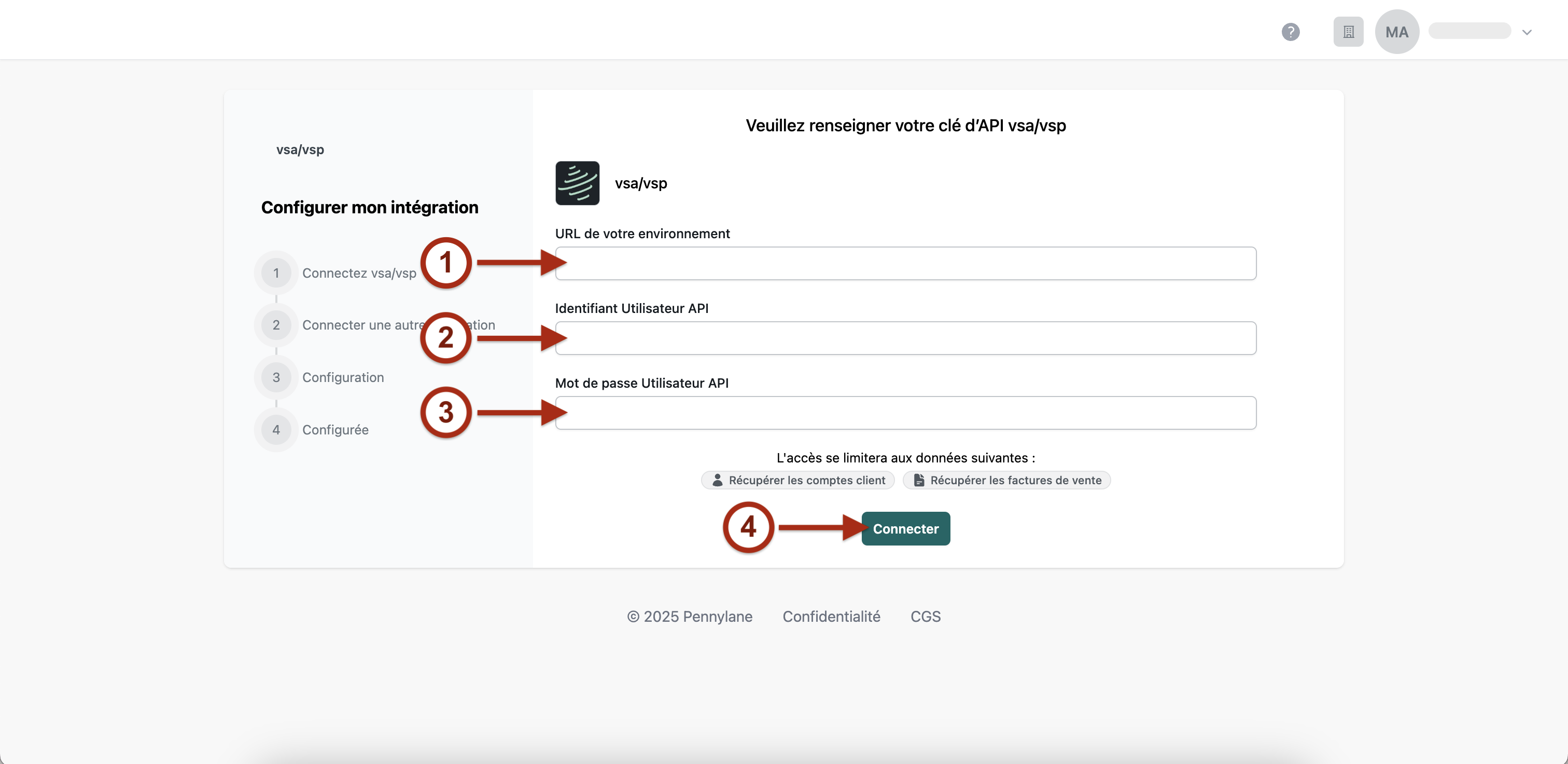 La procédure consiste à créer votre compte utilisateur API sur votre environnement VSA/VSP puis renseigner votre identifiant et mot de passe d’utilisateur API.Temps nécessaire : ± 3 minutes