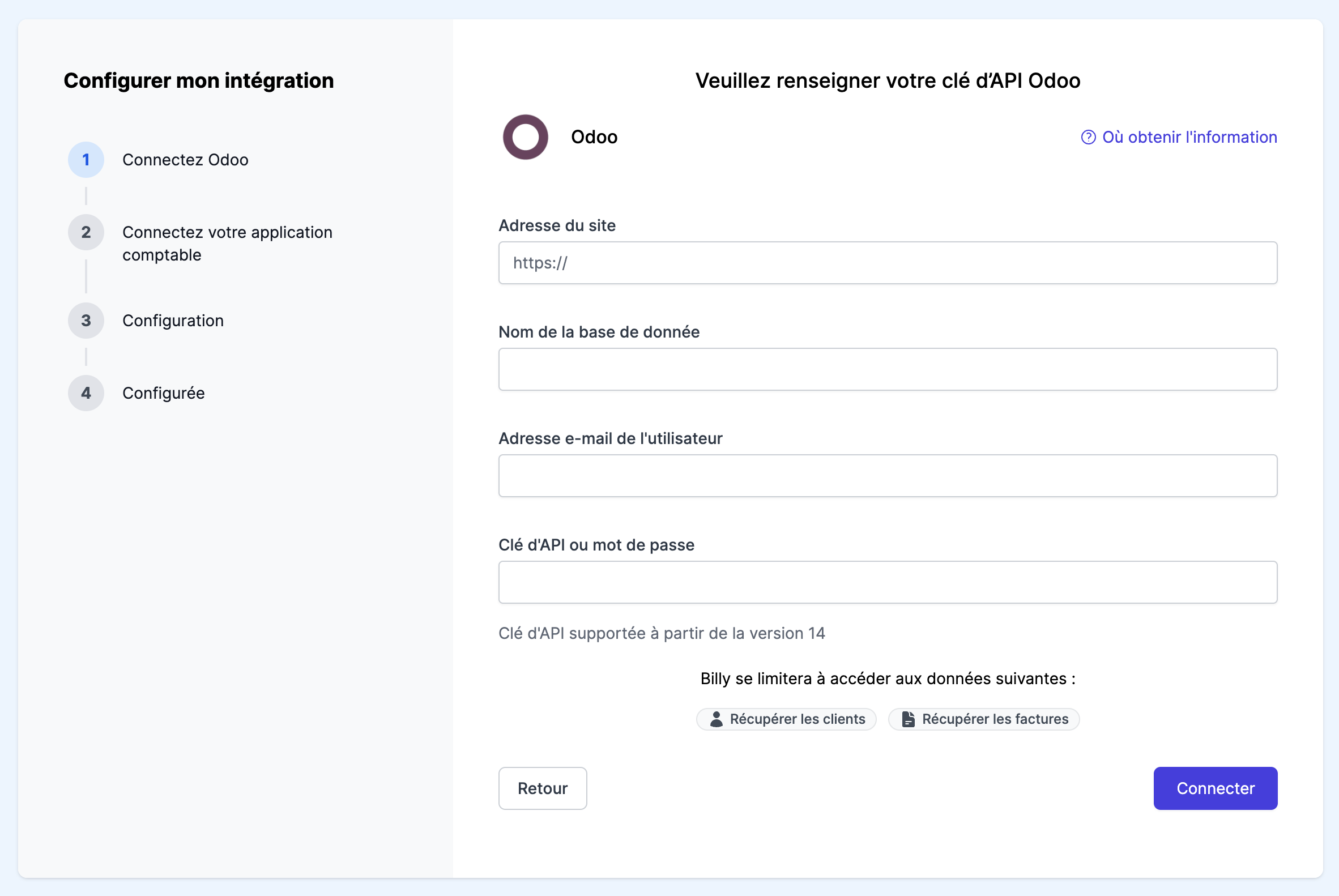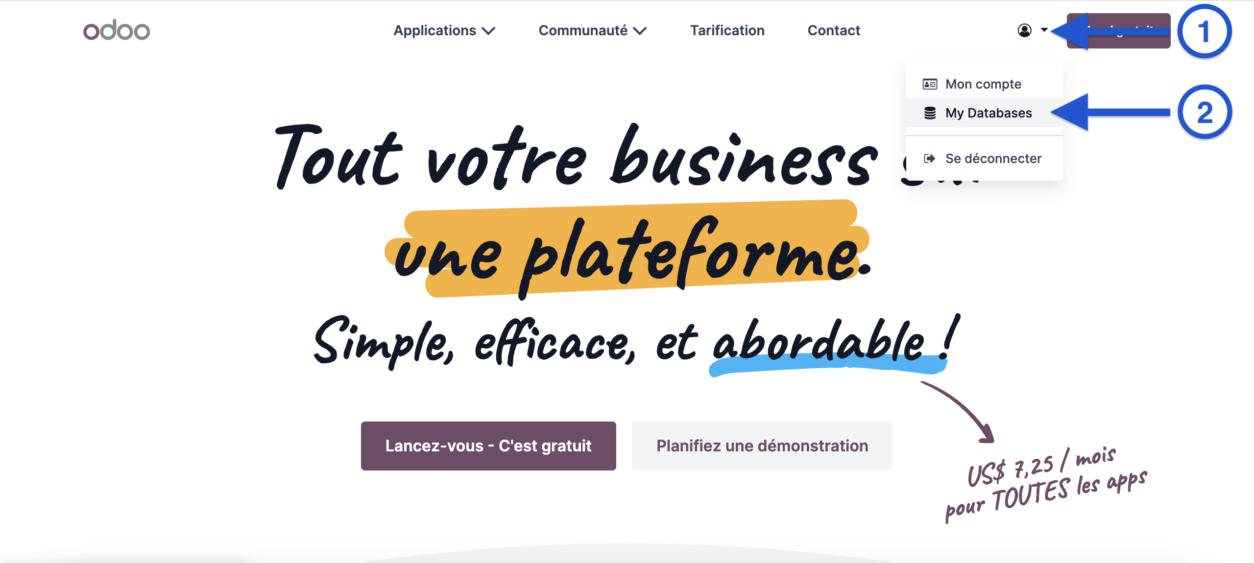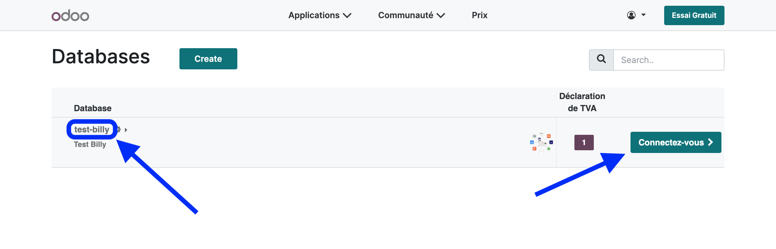 Sélectionner le bouton “Connectez-vous“ de la base de données à connecter