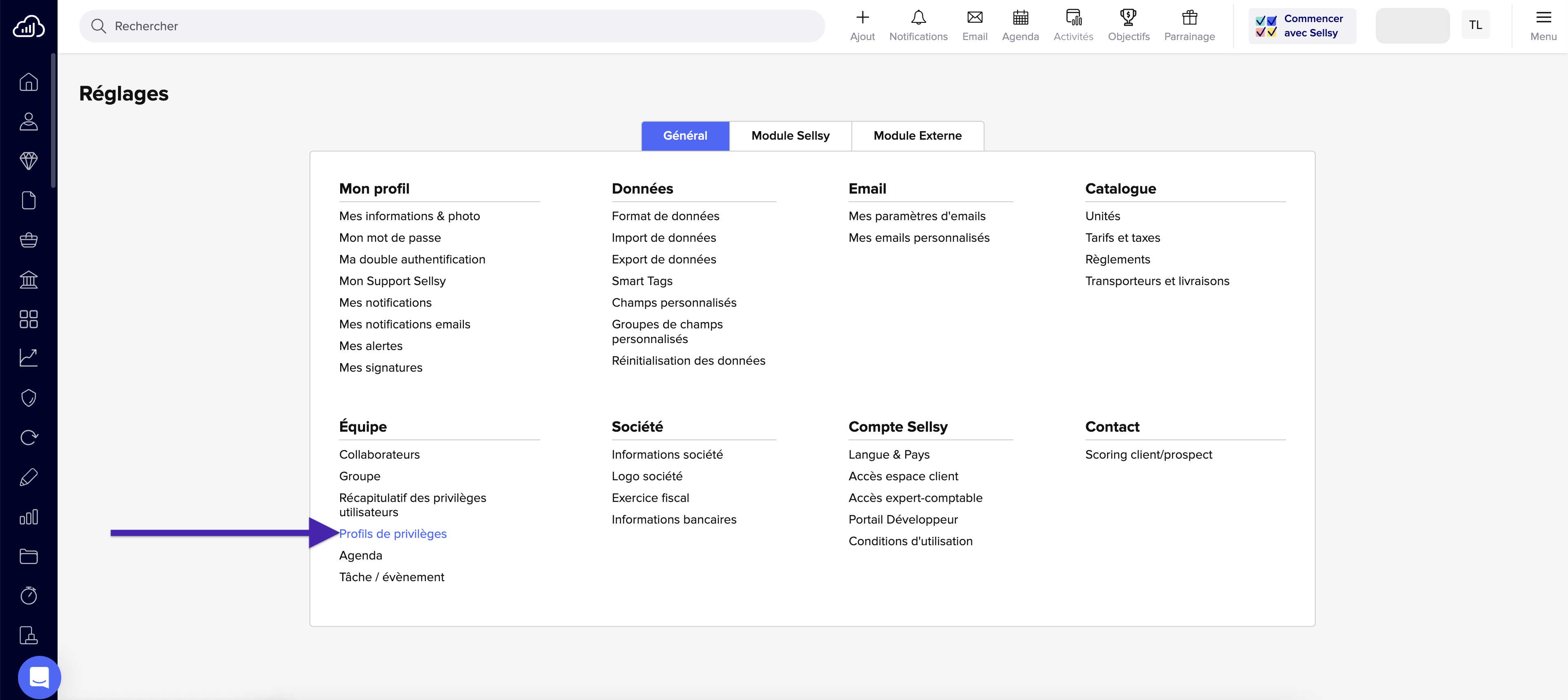 Dans la section Équipe, sélectionner le lien “Profil de privilèges“