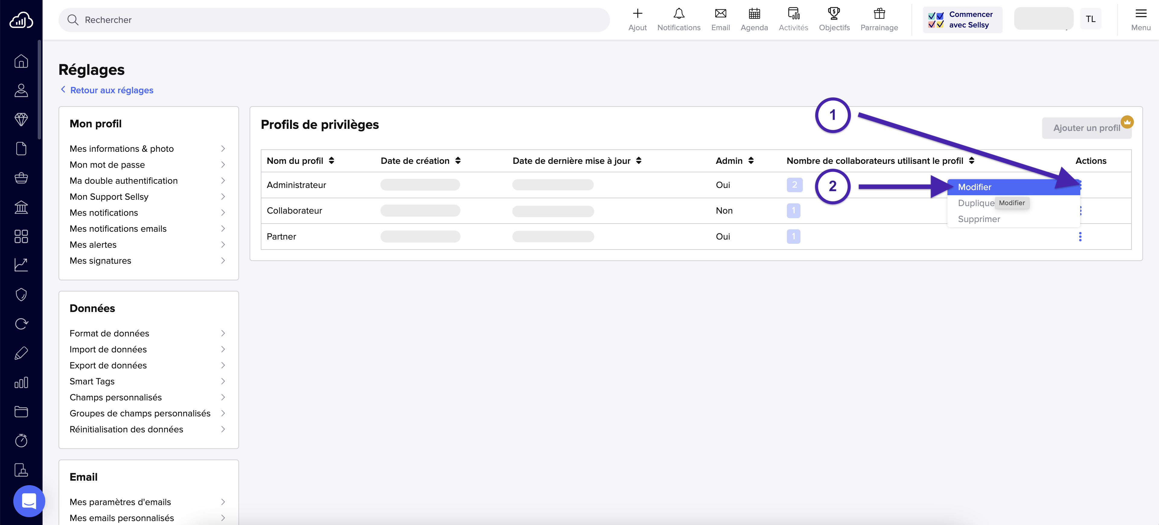 Chercher le profil à modifier et sélectionner le bouton à trois points