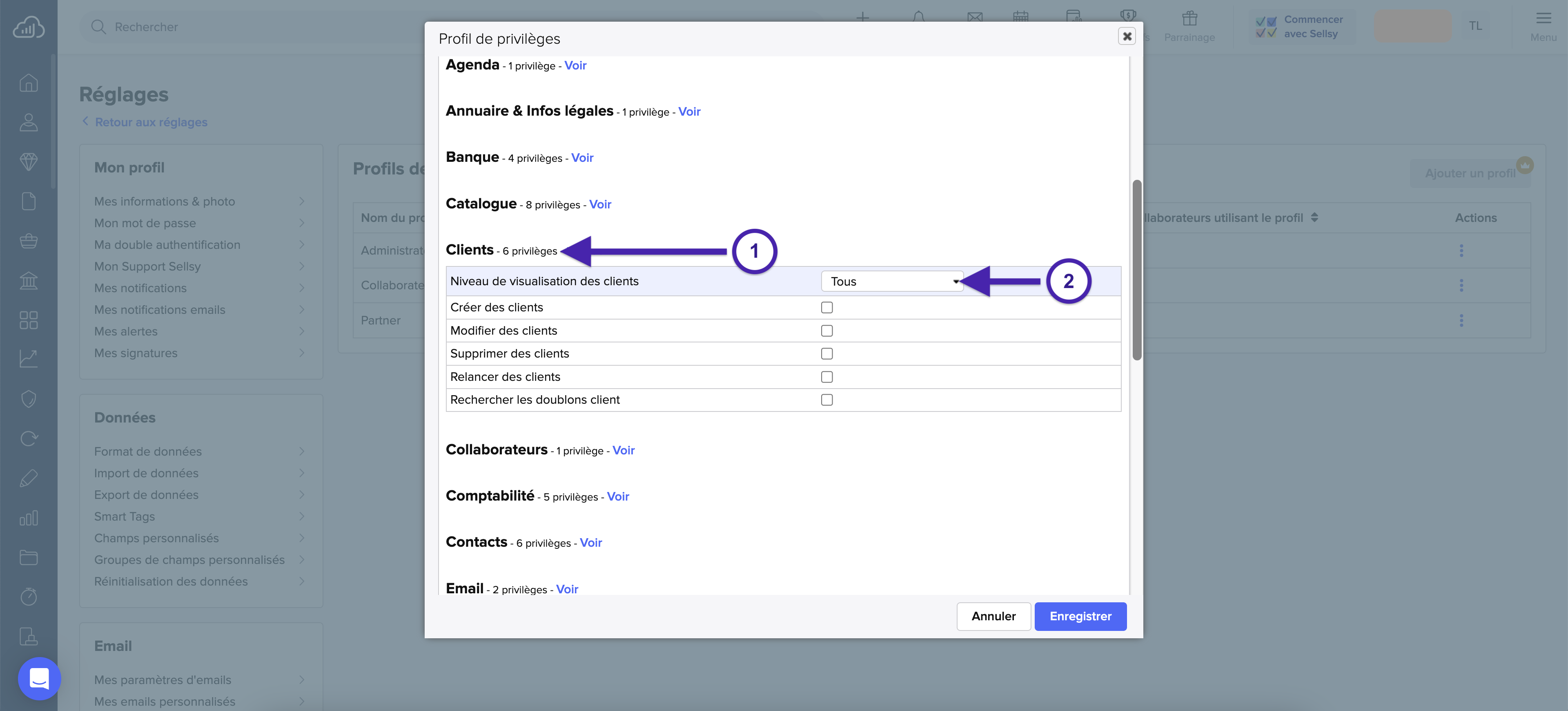Sélectionner l'option “Tous“ dans le sélecteur “Niveau de visualisation des clients“