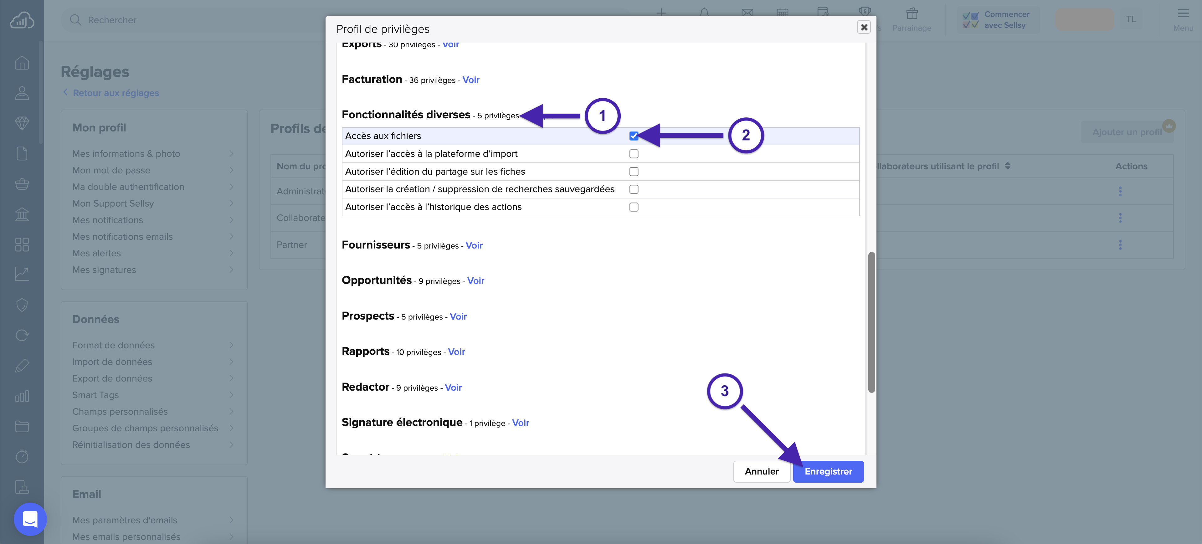 Sélectionner la coche pour l'option “Accès aux fichiers“