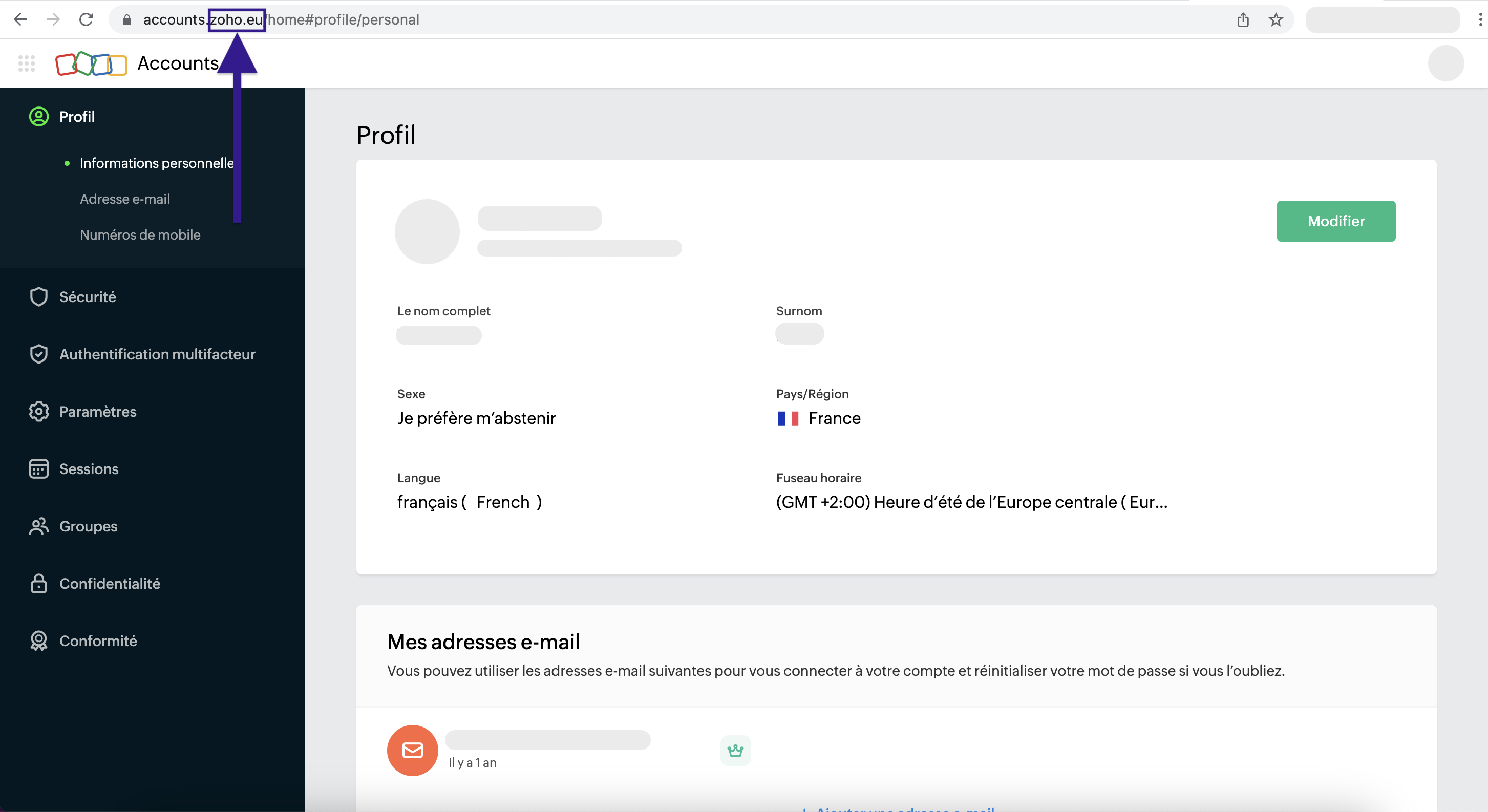 Regarder quel est le domaine que vous utilisez pour Zoho