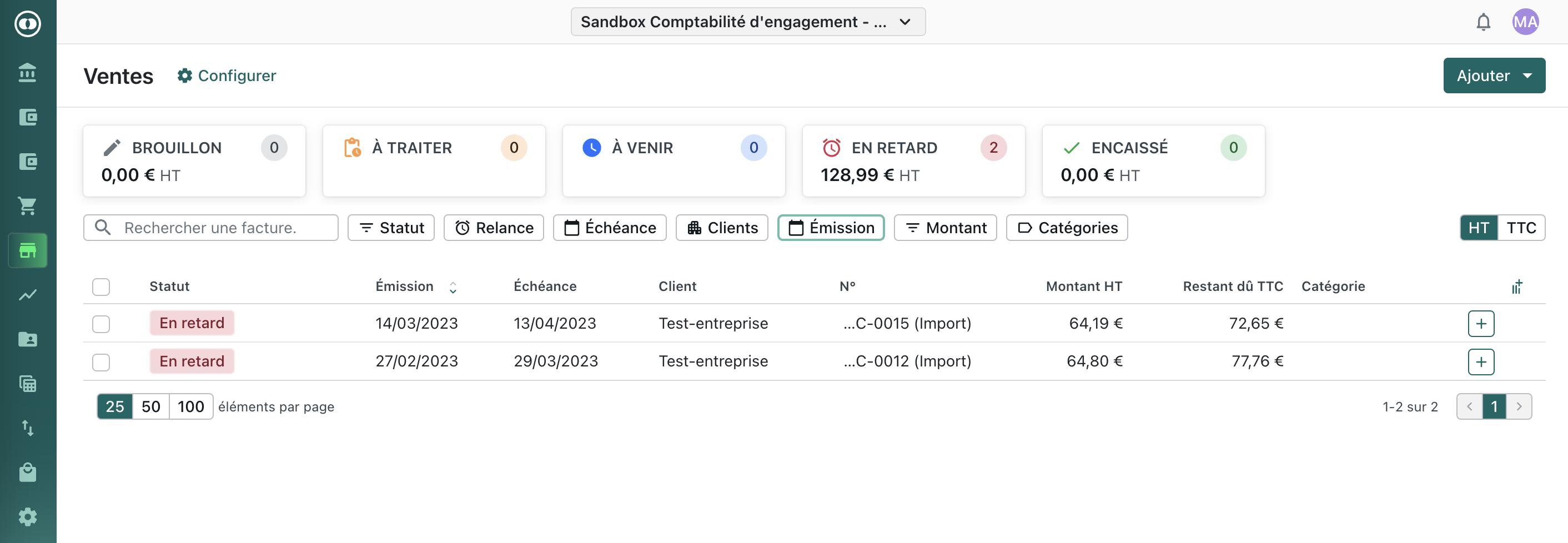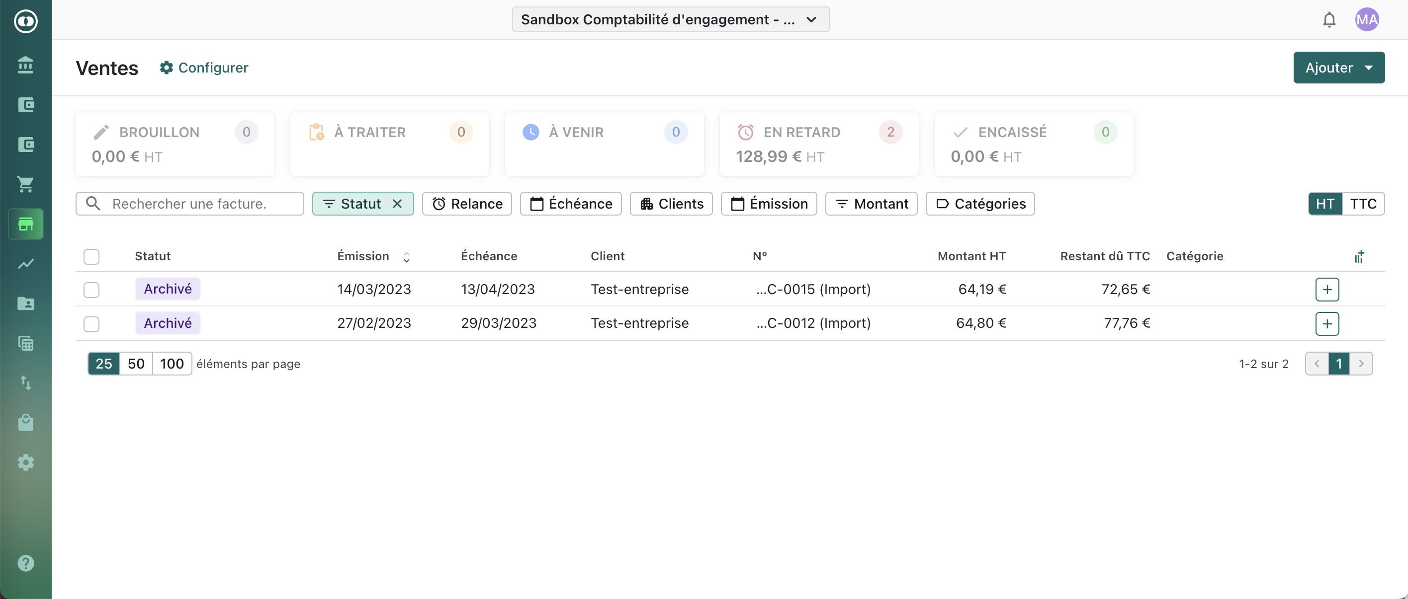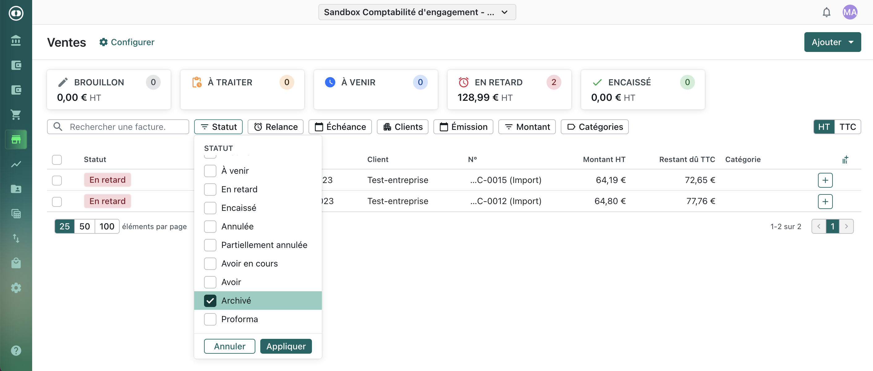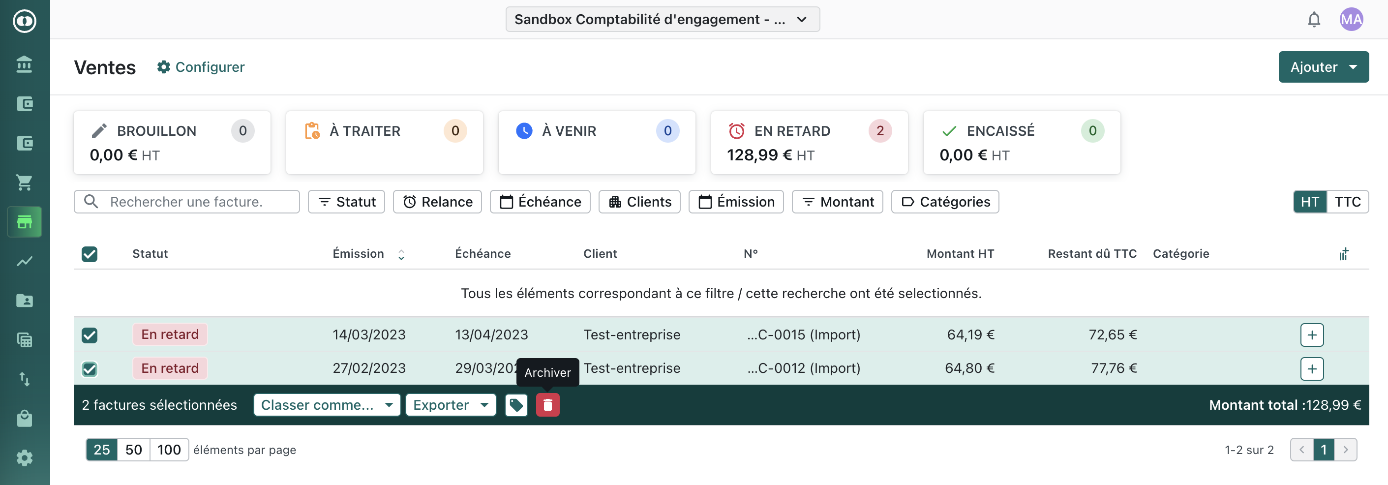 Page Factures de vente