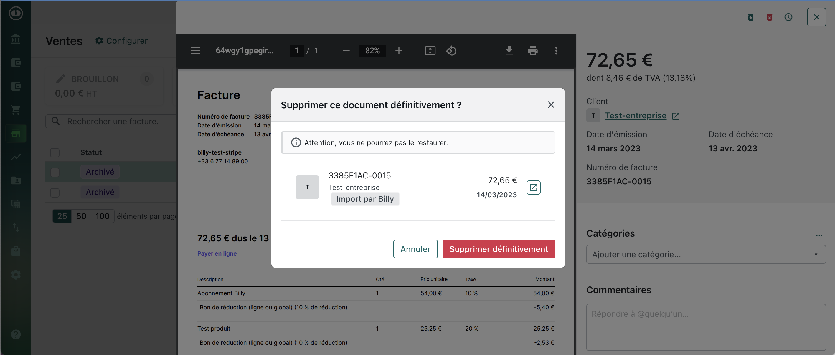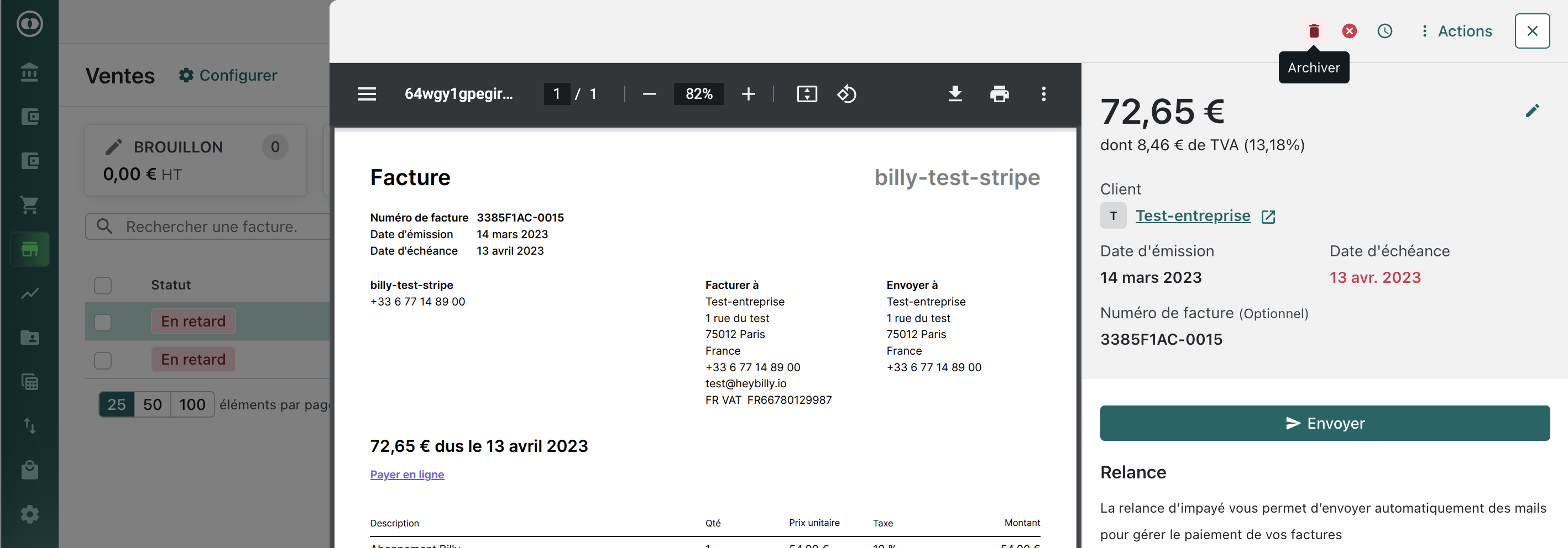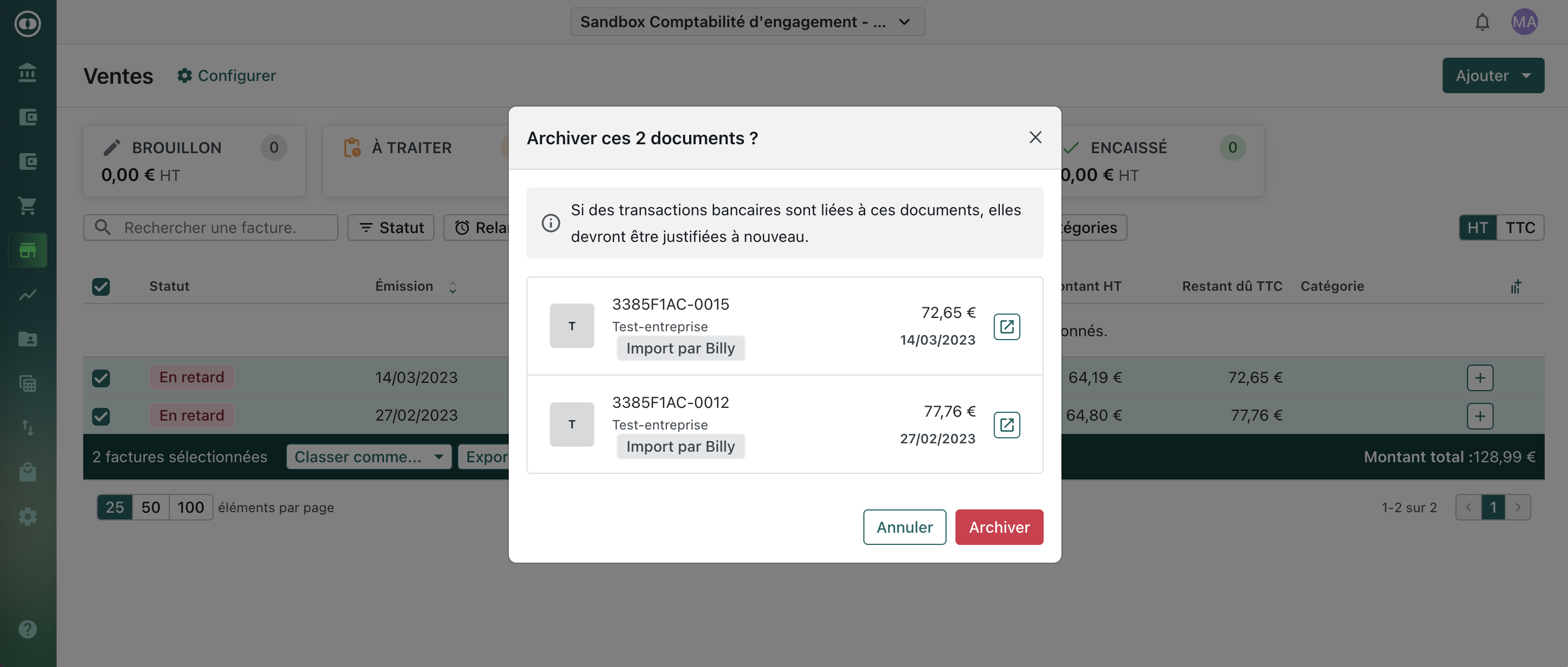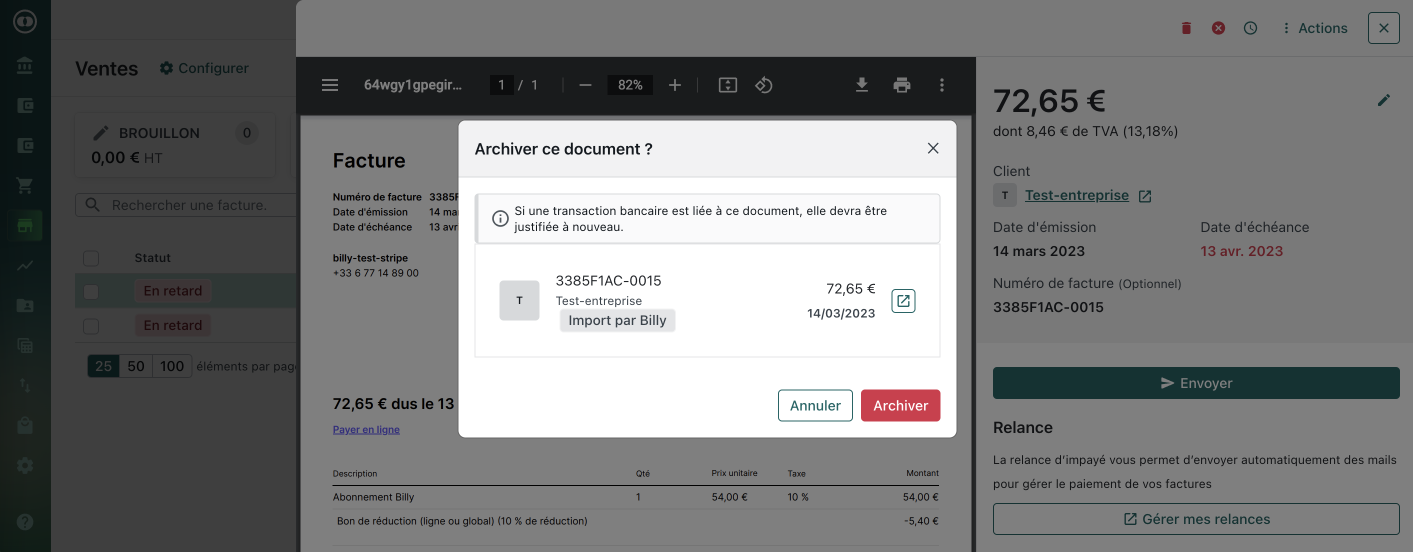 Factures de vente archivées