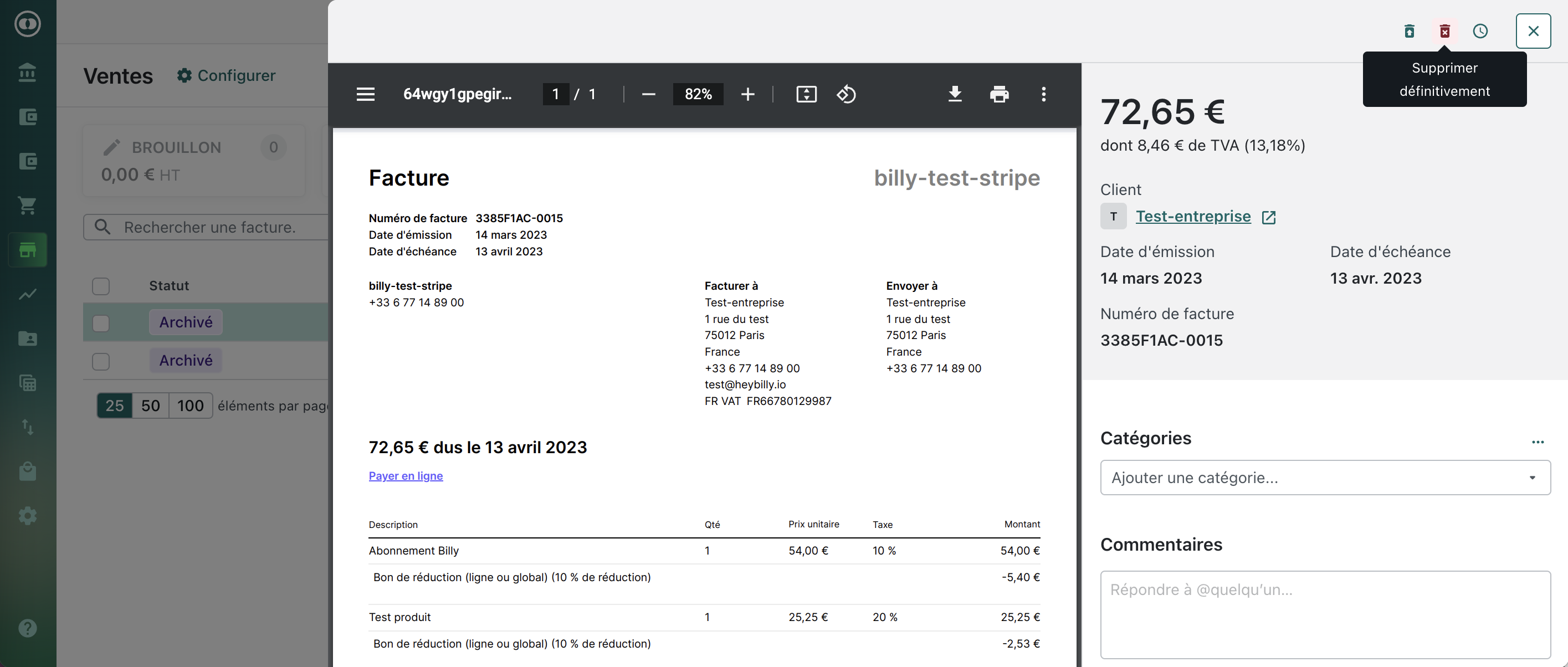 Supprimer une facture
